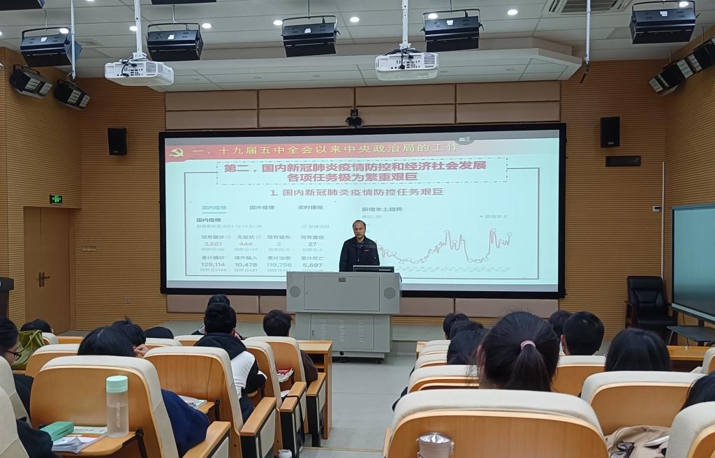 許能鋒帶領(lǐng)師生們回顧了黨的十九屆五中全會(huì)以來(lái)中央政治局的工作,用翔實(shí)的資料和生動(dòng)的案例盤點(diǎn)并總結(jié)了黨的百年奮斗重大成就和歷史經(jīng)驗(yàn)。許能鋒指出,黨的十九屆六中全會(huì)審議通過(guò)的《中共中央關(guān)于黨的百年奮斗重大成就和歷史經(jīng)驗(yàn)的決議》,對(duì)黨的百年光輝歷程進(jìn)行了全面總結(jié),高度概括了我們黨取得的“四個(gè)偉大成就”,鮮明指出了黨百年奮斗的“五大歷史意義”,深刻總結(jié)了“十個(gè)堅(jiān)持”寶貴經(jīng)驗(yàn)。他號(hào)召師生要從黨的百年奮斗中汲取智慧與力量,把貫徹黨的十九屆六中全會(huì)精神轉(zhuǎn)化為奮進(jìn)的動(dòng)力,堅(jiān)定理想、志存高遠(yuǎn),勤學(xué)善思、厚積薄發(fā),勇于擔(dān)當(dāng)、奮發(fā)有為,做一個(gè)有靈魂高度的人,做一個(gè)走在時(shí)代前面的人,做一個(gè)主動(dòng)融入社會(huì)的人,勿忘昨天的重大成就,無(wú)愧今天的使命擔(dān)當(dāng),不負(fù)明天的偉大夢(mèng)想,以昂揚(yáng)風(fēng)貌和優(yōu)異成績(jī)迎接黨的二十大勝利召開(kāi)。