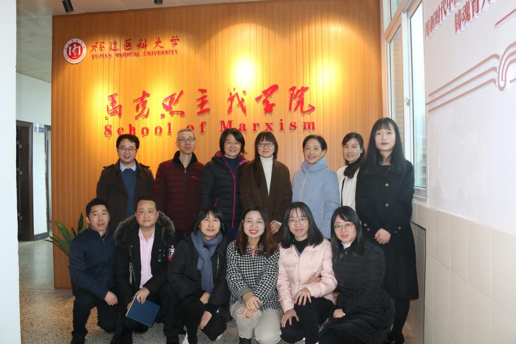 為學(xué)習(xí)思想政治理論課教學(xué)、科研和課程建設(shè)等方面的經(jīng)驗(yàn),促進(jìn)我校思政課程改革,2022年2月18日上午,我校馬克思主義學(xué)院一行6人在熊美蘭院長(zhǎng)的帶領(lǐng)下,前往福建醫(yī)科大學(xué)馬克思主義學(xué)院參觀學(xué)習(xí),受到了葉榕書記和吳任慰院長(zhǎng)的熱情接待。