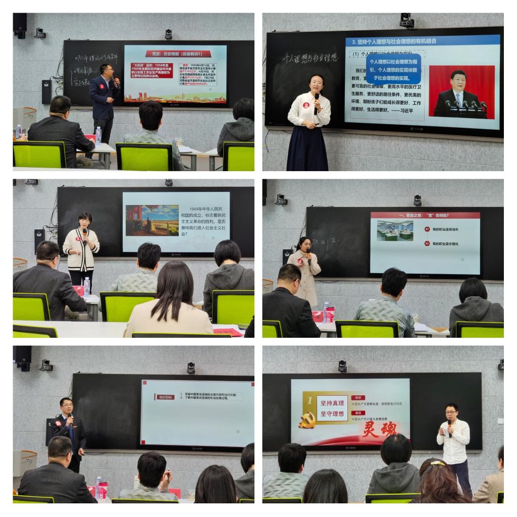 參賽教師從“思想道德與法治”“毛澤東思想和中國(guó)特色社會(huì)主義理論體系概論”“形勢(shì)與政策”三門思政課程中任選一個(gè)專題進(jìn)行教學(xué)設(shè)計(jì),并在15分鐘的競(jìng)賽時(shí)間內(nèi)進(jìn)行現(xiàn)場(chǎng)教學(xué)展示。選手們的精心備賽和精彩展示,充分展現(xiàn)了我校思政課教師專業(yè)、嚴(yán)謹(jǐn)?shù)慕虒W(xué)風(fēng)采和創(chuàng)新教學(xué)改革的精神。
