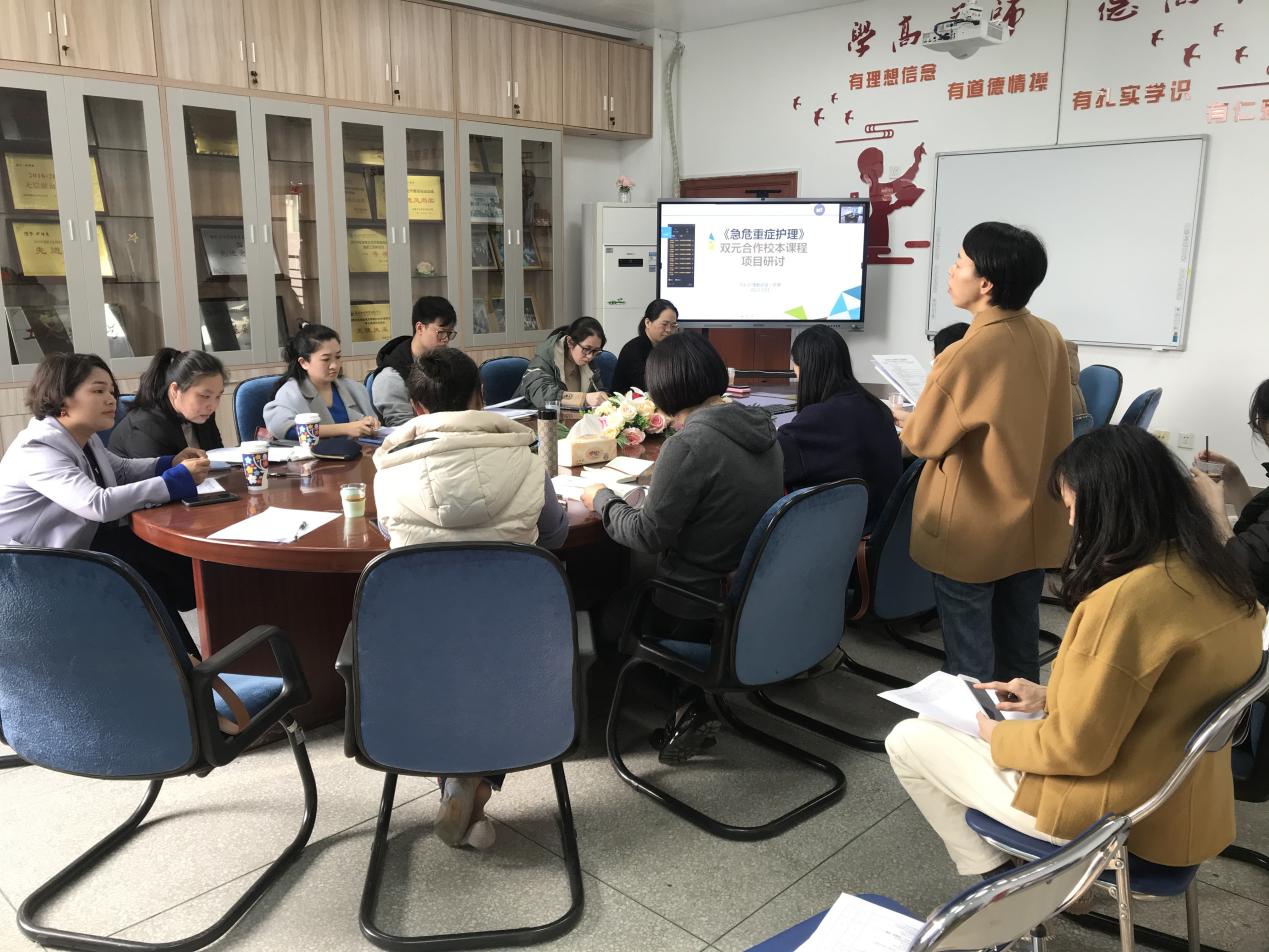 “急救護(hù)理”系列示范建設(shè)以建成校級(jí)標(biāo)準(zhǔn)、校企雙元、產(chǎn)教融合的資源共享課程、在線開放課程為目標(biāo),以進(jìn)一步完善課程資源開發(fā)及校企合作雙元教材研發(fā)為重點(diǎn)。研討會(huì)上,護(hù)理學(xué)院第二黨支部書記兼內(nèi)科護(hù)理教研室主任洪霞、黨員教師張璟和龔仁燕分別介紹了《急危重癥護(hù)理》課程擬定開發(fā)微課設(shè)計(jì)思路、課程擬修訂教學(xué)模式、課程網(wǎng)站建設(shè)與完善思路等課程示范建設(shè)任務(wù)的實(shí)施方案以及雙元合作校本教材的設(shè)計(jì)思路、老年保健專業(yè)《基本救護(hù)技術(shù)》的進(jìn)度。各醫(yī)院臨床教師熱烈討論,積極建言,引入職業(yè)技能培訓(xùn)中采用的新標(biāo)準(zhǔn)、新規(guī)范、新技術(shù),使日常教學(xué)更加貼近臨床實(shí)踐。