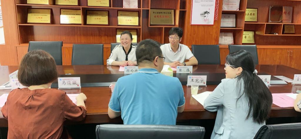 鄧元榮對(duì)顏玲珠一行到訪表示熱烈歡迎,并介紹了醫(yī)學(xué)院的專業(yè)建設(shè)、人才培養(yǎng)等情況。馬清璇從專業(yè)定位、師資力量、校內(nèi)外實(shí)訓(xùn)基地建設(shè)、社會(huì)活動(dòng)、專業(yè)特色等方面匯報(bào)口腔醫(yī)學(xué)專業(yè)人才培養(yǎng)情況。王憲寧介紹了護(hù)理學(xué)院辦學(xué)歷史、專業(yè)建設(shè)、人才培養(yǎng)、校企合作等情況。顏玲珠介紹此次回訪交流的目的、集團(tuán)基本情況及合作意向,并希望在口腔護(hù)理教育、企業(yè)獎(jiǎng)勵(lì)金、技能競(jìng)賽等方面開(kāi)展合作,將此前訪企拓崗促就業(yè)行動(dòng)達(dá)成的合作意向落地落實(shí)。