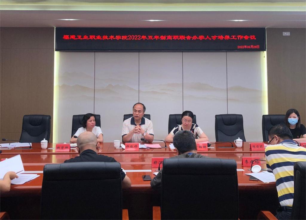 為深入了解“三二分段制”聯(lián)合辦學(xué)情況,加強(qiáng)校校合作,實(shí)現(xiàn)中等和高等職業(yè)教育有機(jī)銜接,確保人才培養(yǎng)質(zhì)量,6月29日下午,我校邀請福建閩北衛(wèi)生學(xué)校、閩侯縣職業(yè)中專學(xué)校、柘榮職業(yè)技術(shù)學(xué)校、福建鐵路機(jī)電學(xué)校、連江職業(yè)中專學(xué)校5所中職學(xué)校領(lǐng)導(dǎo)及有關(guān)負(fù)責(zé)人在行政樓五樓會議室召開“三二分段制”聯(lián)合辦學(xué)工作會議。校長許能鋒、副校長黃銘珊,教務(wù)處和學(xué)生工作部負(fù)責(zé)人、各學(xué)院(系)分管教學(xué)領(lǐng)導(dǎo)及相關(guān)專業(yè)負(fù)責(zé)人參加會議。