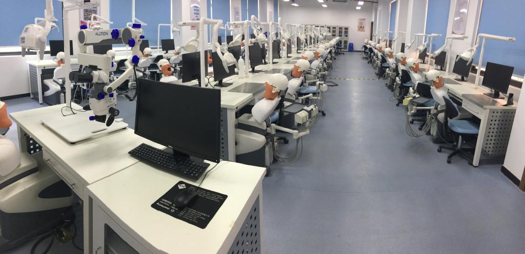 校內(nèi)實訓(xùn)基地面積達700平方米,包含口腔綜合實訓(xùn)室、口腔模擬診室、口腔修復(fù)工藝室及門診部口腔科等,擁有100套對接臨床的仿頭模教學(xué)系統(tǒng),教學(xué)設(shè)備總值為800多萬元,為學(xué)生開展各項實訓(xùn)對接口腔臨床工作任務(wù)提供了堅實的基礎(chǔ)。