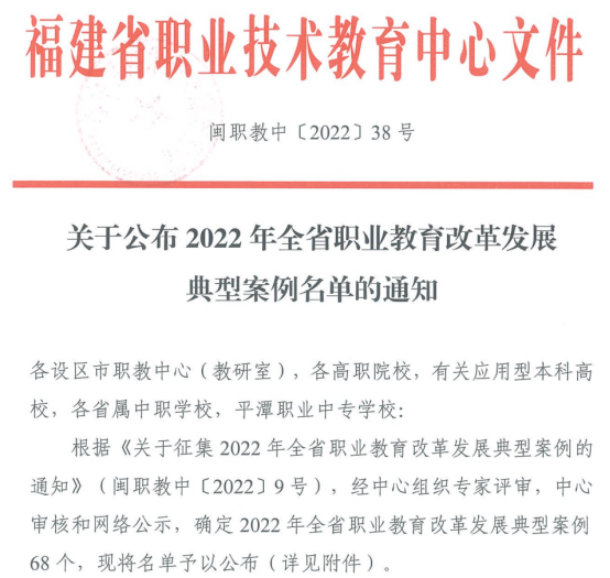 據(jù)悉,此次職業(yè)教育改革發(fā)展典型案例面向全省中職院校、高職院校和有關(guān)應(yīng)用型本科高校進(jìn)行征集,經(jīng)組織遴選,共選出典型案例68個(gè)。