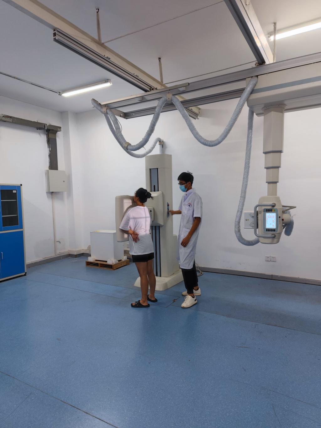截止目前,聯(lián)影醫(yī)學(xué)影像產(chǎn)業(yè)學(xué)院共完成了28個專業(yè)90個班級4000余名新生的胸片體檢。老師們嫻熟標(biāo)準(zhǔn)的操作、輔導(dǎo)員們現(xiàn)場跟班帶隊引導(dǎo)、醫(yī)學(xué)影像技術(shù)專業(yè)高年級學(xué)生志愿者忙碌的身影、2022級萌新們對學(xué)校先進實訓(xùn)設(shè)備的探究神情,展現(xiàn)出專業(yè)育人、實踐育人的良好風(fēng)貌,勾勒出一道靚麗的校園風(fēng)景。