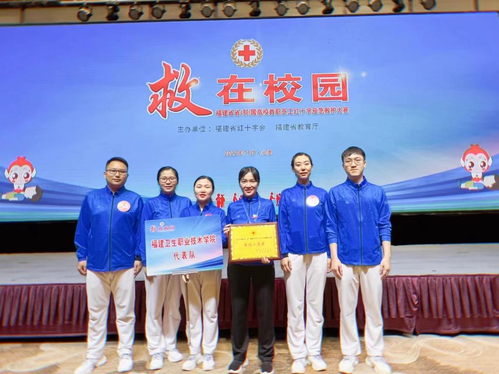 2022年11月29日,福建省紅十字會、福建省教育廳聯(lián)合舉辦的省部屬高校教職員工紅十字應(yīng)急救護大賽在福州舉辦。來自23支高校代表隊、115名隊員參加比賽。我校李晶老師帶領(lǐng)李冬秀、張靜雯、唐恒宥、袁曉野、卓立濤5位教師組成代表隊參賽,榮獲“福建高校教職員工紅十字應(yīng)急救護大賽團體二等獎”,并將代表?。ú浚俑咝⒓拥谄邔萌〖t十字應(yīng)急救護大賽決賽。