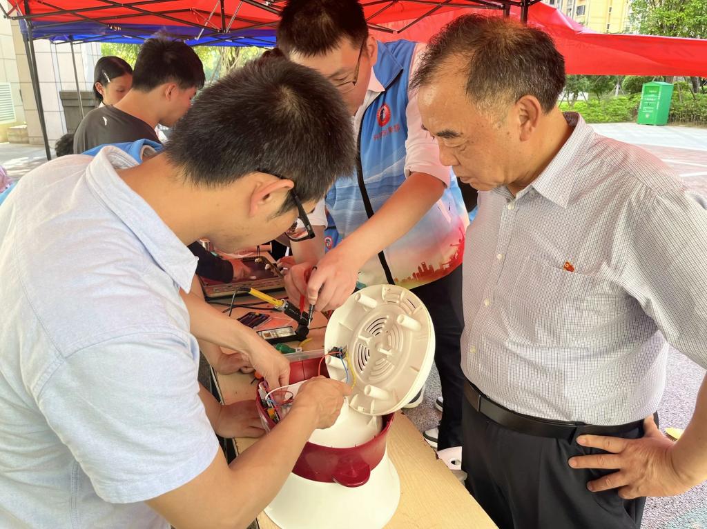 5月18日,醫(yī)學(xué)技術(shù)系組織黨員教師、學(xué)生骨干等30余人赴閩侯中鐵城社區(qū)開展“技能:讓生活更美好”職教服務(wù)暨主題教育黨日活動?;顒又校t(yī)學(xué)檢驗技術(shù)專業(yè)的師生為居民開展血型鑒定、血糖測定和乙肝表面抗原檢測,普及無償獻血的常識和意義以及糖尿病和乙肝預(yù)防知識;醫(yī)學(xué)影像技術(shù)專業(yè)的師生為10余名社區(qū)居民提供全腹超聲檢查服務(wù);醫(yī)療智能裝備技術(shù)專業(yè)的師生聯(lián)合組成義務(wù)維修小隊,為社區(qū)居民開展醫(yī)療家用電子儀器免費維修活動;眼視光專業(yè)技術(shù)專業(yè)的師生為社區(qū)青少年開展視力篩查,普及近視防控和健康用眼知識,提高青少年學(xué)生視力保護的意識,鼓勵他們帶動身邊同學(xué)和親人加入愛眼護眼的隊伍中來,從而降低近視的發(fā)病率。職業(yè)技能進社區(qū)活動,宣傳展示醫(yī)學(xué)技術(shù)系職業(yè)教育服務(wù)群眾的豐碩成果,不僅讓社區(qū)居民感受到現(xiàn)代醫(yī)學(xué)職業(yè)教育的特色與魅力,增強社會對我校辦學(xué)的認知度,也是醫(yī)學(xué)技術(shù)系黨員師生結(jié)合主題教育為身邊群眾辦實事好事的重要實踐。