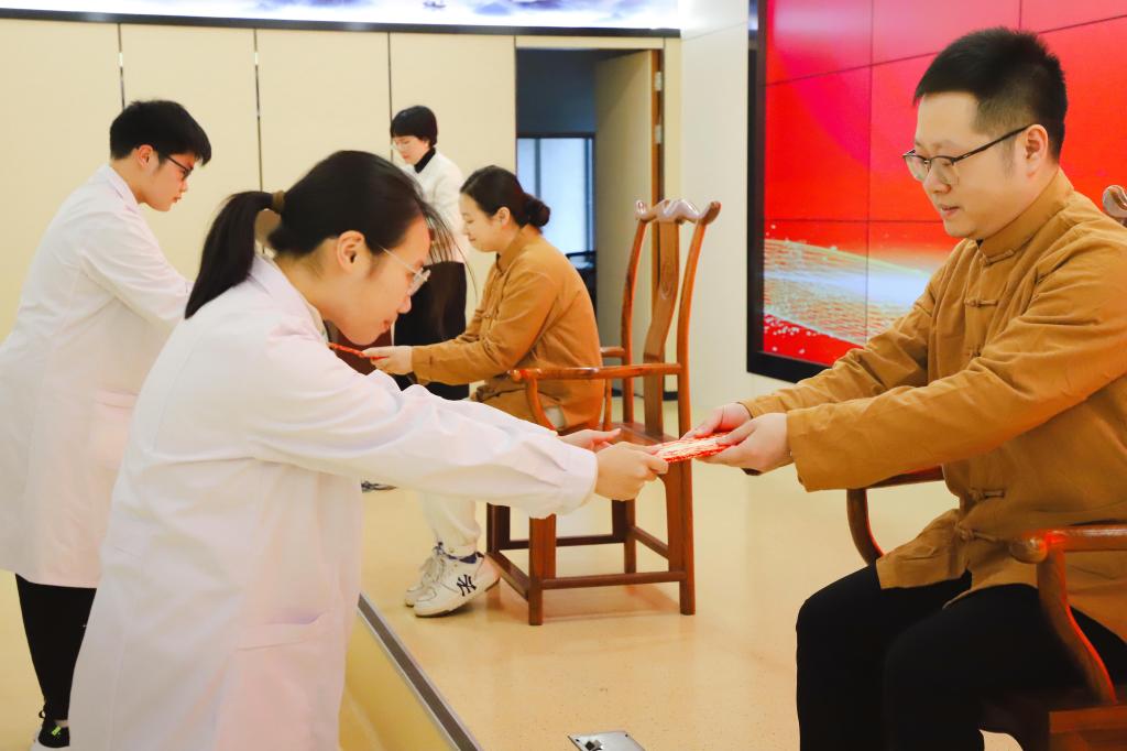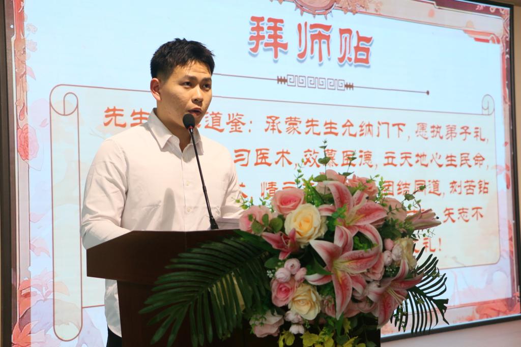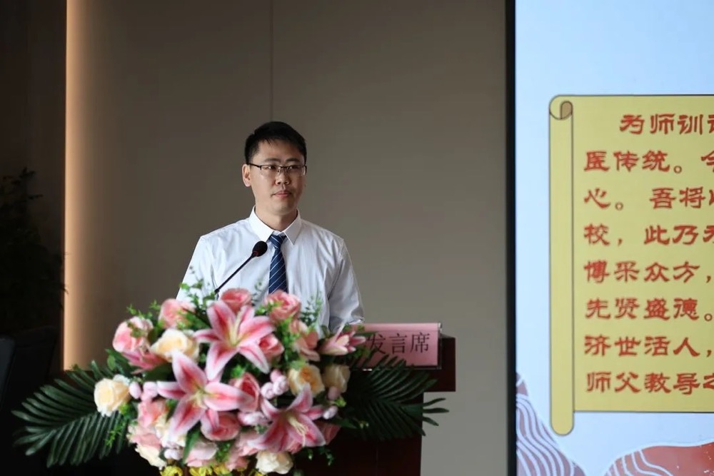 師承教育是中醫(yī)藥人才培養(yǎng)的主要模式,在傳承中醫(yī)藥學術思想、臨床經(jīng)驗方面發(fā)揮著不可替代的重要作用,而拜師是對中華醫(yī)學的繼承。學生們依次向自己的導師鞠躬行禮、呈拜師帖、奉茶、獻花。