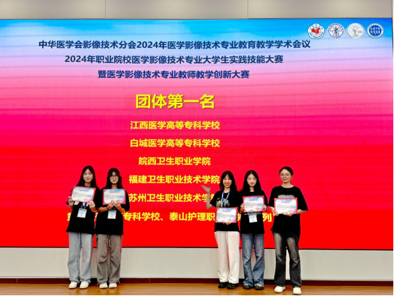 9月19日至22日,2024年職業(yè)院校醫(yī)學(xué)影像技術(shù)專(zhuān)業(yè)大學(xué)生實(shí)踐技能大賽在江西上饒舉行,我校醫(yī)學(xué)技術(shù)與工程學(xué)院醫(yī)學(xué)影像技術(shù)專(zhuān)業(yè)獲得團(tuán)體一等獎(jiǎng),并獲單項(xiàng)一等獎(jiǎng)三項(xiàng)、三等獎(jiǎng)兩項(xiàng)的好成績(jī),杜世遠(yuǎn)、曾良成和吳沁三位老師獲得“優(yōu)秀指導(dǎo)教師”榮譽(yù)稱號(hào)。