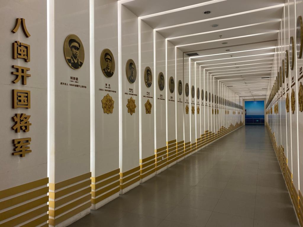 最后,支部黨員們的目光被一條金碧輝煌的長廊墻所吸引,這是一條刻有83位“八閩開國將軍”圖像的將軍長廊,每一位將軍對中國革命勝利都有卓越的奉獻(xiàn)。黨員們懷著崇敬的心情,莊嚴(yán)肅穆地瞻仰每一位將軍,大家欣喜發(fā)現(xiàn)張力雄將軍和涂通今將軍還健在,他們是在世為數(shù)不多的開國將軍,是中華民族的財富和瑰寶,值得每一位中國人民敬仰。