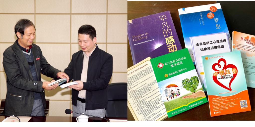 江云向我校贈(zèng)送了《職工醫(yī)療互助活動(dòng)服務(wù)指南》《企事業(yè)員工心理健康維護(hù)與促進(jìn)指南》等學(xué)習(xí)宣傳資料,希望我校發(fā)揮醫(yī)學(xué)院校專業(yè)特色優(yōu)勢(shì),與省職工服務(wù)中心聯(lián)合面向社會(huì)開(kāi)展職工心理健康服務(wù)工作。