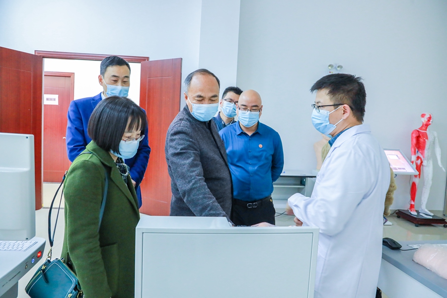 開班儀式結束后,李朝暉帶領許能鋒等到醫(yī)院各科室走訪參觀。