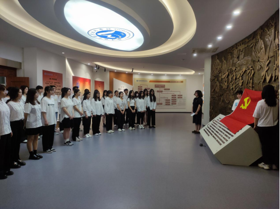 在學(xué)生第二黨支部書記蔣程序同志帶領(lǐng)下,敖昌群等預(yù)備黨員面向黨旗,舉起右手,莊嚴(yán)宣誓,用鏗鏘有力的聲音許下新時(shí)代共產(chǎn)黨人鄭重的承諾。擲地有聲的誓言響徹校史館,印證百年閩衛(wèi)院人的使命擔(dān)當(dāng)。