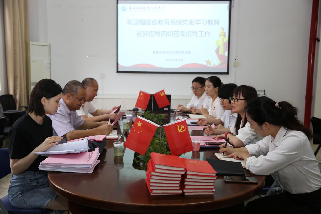 為推動(dòng)黨史學(xué)習(xí)教育在基層黨組織中走深走實(shí),及貫徹落實(shí)省委“再學(xué)習(xí)、再調(diào)研、再落實(shí)”活動(dòng)精神,2021年6月24日上午,福建省教育系統(tǒng)黨史學(xué)習(xí)教育巡回指導(dǎo)四組副組長(zhǎng)葉青及成員高磐、林木子到直屬馬克思主義學(xué)院黨支部指導(dǎo)工作。校宣傳部部長(zhǎng)柯瓊鶯及直屬馬克思主義學(xué)院黨支部委員會(huì)全體成員列席會(huì)議。直屬馬克思主義學(xué)院黨支部書記、黨史學(xué)習(xí)教育領(lǐng)導(dǎo)小組組長(zhǎng)熊美蘭主持會(huì)議。