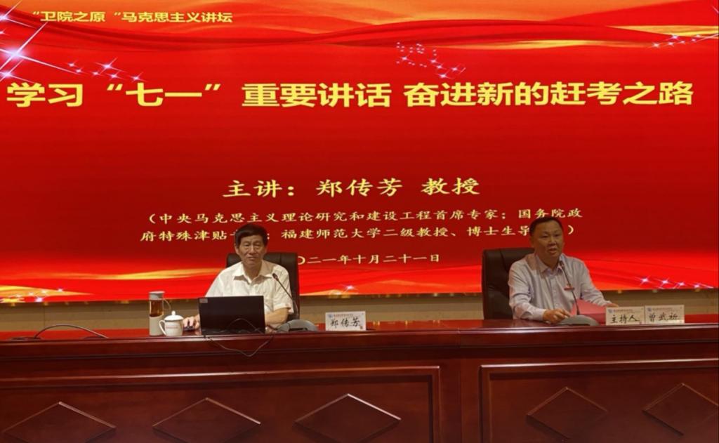 為深入學(xué)習(xí)宣傳貫徹“七一”重要講話精神,持續(xù)推進(jìn)黨史學(xué)習(xí)教育走深走實(shí),我校特邀中央馬克思主義理論研究和建設(shè)工程首席專家、福建師范大學(xué)鄭傳芳教授作題為《學(xué)習(xí)“七一”重要講話 奮進(jìn)新的趕考之路》的專題講座。講座由校黨委書(shū)記曾武祈主持,校領(lǐng)導(dǎo)、中層干部、思政課教師、校園網(wǎng)絡(luò)文化五支隊(duì)伍和醫(yī)學(xué)技術(shù)系等師生代表共120人參加。