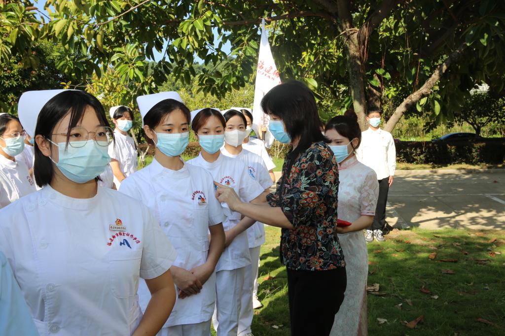 今天上午,我校護理學(xué)院54名師生在校內(nèi)南丁格爾像前舉行出征儀式,他們將支援福州市全員核酸檢測應(yīng)急演練。出征儀式上,學(xué)院黨委書記曾武祈、校長許能鋒分別為出征隊伍授黨旗、校旗。黨委副書記李美華帶領(lǐng)護理學(xué)院班子成員為隊員貼上校標臂章。黨委書記曾武祈寄語隊員:一是茍利國家生死以,豈因禍福避趨之。希望同志們發(fā)揚習(xí)近平總書記“七一”重要講話精神,發(fā)揮強國有我、請黨放心的擔(dān)當(dāng);二是紙上得來終覺淺,絕知此事要躬行。希望同志們保持嚴明的紀律,發(fā)揚優(yōu)良的傳統(tǒng),展現(xiàn)精湛的技術(shù);三是長風(fēng)破浪會有時,直掛云帆濟滄海。祝愿同志們不辱使命,展現(xiàn)青春之風(fēng),圓滿完成任務(wù)。參加出征儀式的還有黨委副書記李美華和護理學(xué)院班子成員。