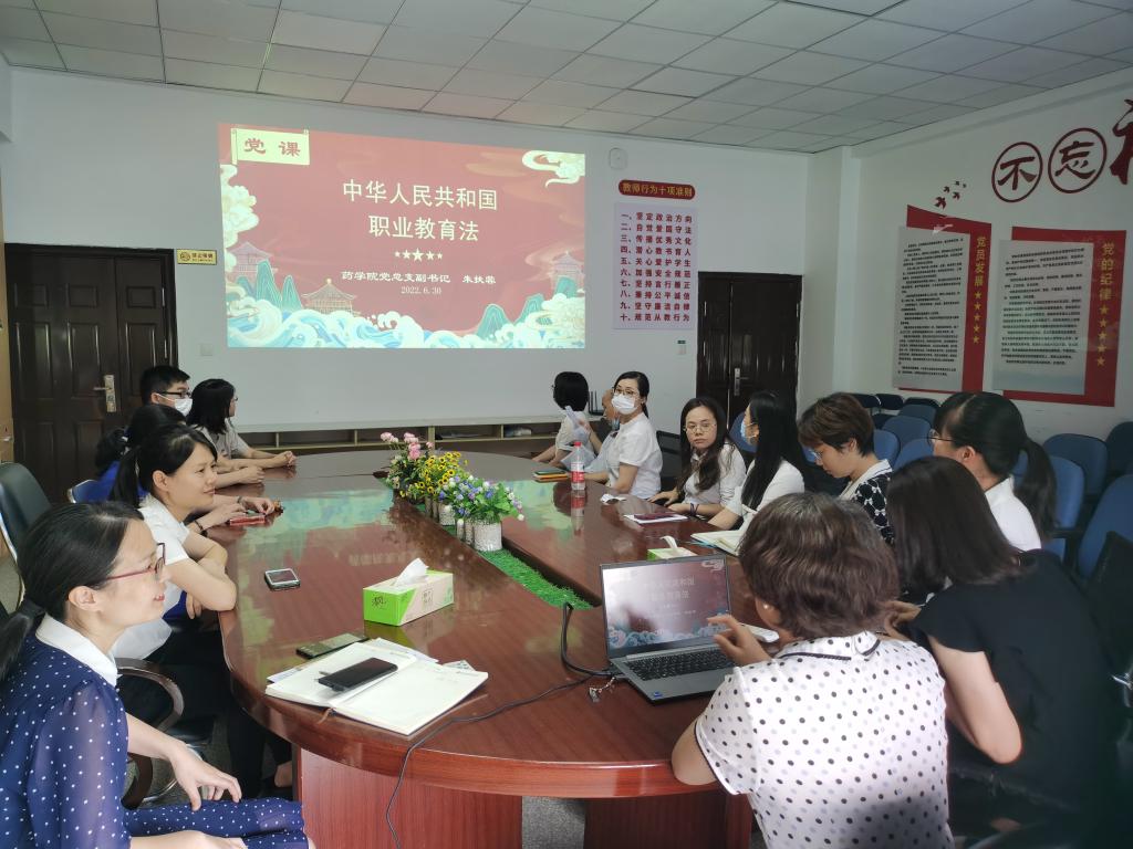 2022年6月30日,正值七一前夕,藥學院第一黨支部組織全體黨員在藥學院會議室上黨課。