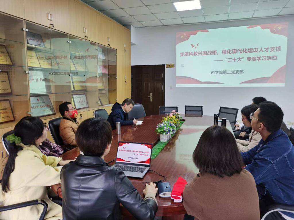 為進一步學(xué)習(xí)宣傳貫徹好黨的二十大精神,2023年1月5日,藥學(xué)院第二黨支部書記圍繞“實施科教興國戰(zhàn)略,強化現(xiàn)代化建設(shè)人才支撐”開展主題黨日專題學(xué)習(xí)。本次活動由支部書記劉丹丹主持。