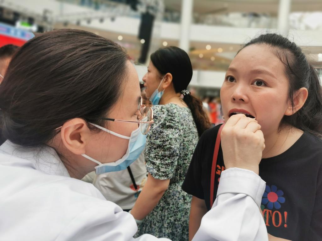 活動現(xiàn)場,我校醫(yī)學院口腔教研室教師黨員為閩侯縣甘蔗街道居民及附近村民進行口腔檢查,解答口腔相關問題并給予專業(yè)性指導,同時還科普宣傳了口腔知識,受到當?shù)厝罕姷囊恢潞迷u。