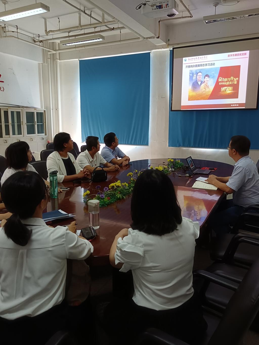 為廣泛宣傳孫麗美同志的崇高精神,教育引導廣大黨員、干部以先進典型為榜樣,弘揚偉大建黨精神,2021年9月9日,醫(yī)學系第四黨支部全體黨員一起觀看學習孫麗美同志先進事跡視頻。