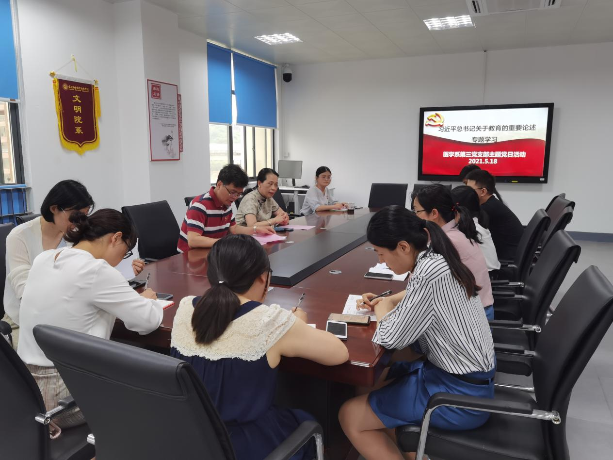 為深入學(xué)習(xí)貫徹習(xí)近平總書(shū)記關(guān)于教育工作的重要論述,增強(qiáng)教師黨員同志先鋒意識(shí), 5月18日中午,醫(yī)學(xué)系第三黨支部在實(shí)訓(xùn)樓311開(kāi)展學(xué)習(xí)“習(xí)近平總書(shū)記關(guān)于教育的重要論述”主題黨日活動(dòng)。第三黨支部全體黨員參加了本次大會(huì),活動(dòng)由支部書(shū)記陳銘主持。