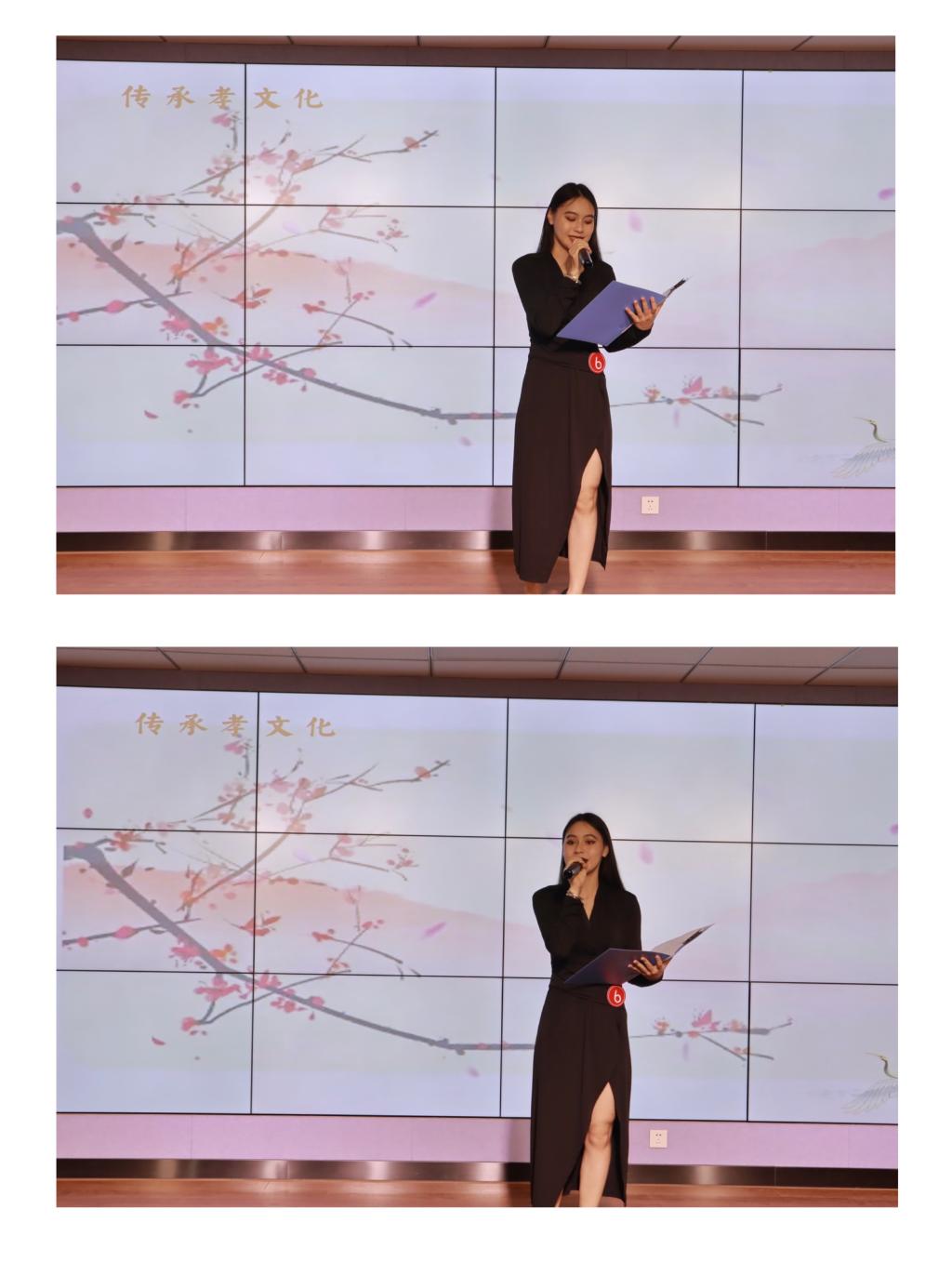 鐘昕玥同學聲情并茂的朗誦,從不同角度體現(xiàn)了中華民族的傳統(tǒng)美德,彰顯出當代青年大學生孝老敬老的堅定信念,為現(xiàn)場觀眾們獻上了一場震撼人心的視聽盛宴!