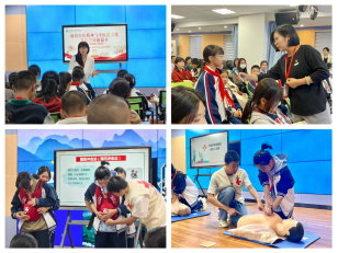 結(jié)繩訓(xùn)練、火災(zāi)模擬逃生、地震防御……大家在紅十字生命教育體驗學(xué)堂通過互動展示、模擬體驗等形式,深入了解了一系列生命科學(xué)知識,深化了對生命的敬畏心理。隨后,與會師生接受心肺復(fù)蘇術(shù)、創(chuàng)傷包扎、AED等急救知識技能培訓(xùn),在實操演練中增強應(yīng)對突發(fā)事件的能力,深切感悟到“人道、博愛、奉獻”的紅十字會精神。這堂立足于生命健康教育的“大思政課”,凸顯了體驗式、沉浸式的實踐教育教學(xué),彌補了“思政小課堂”的不足,為大中小學(xué)思政課一體化建設(shè)提供了獨特資源和特色模式的參照經(jīng)驗。
