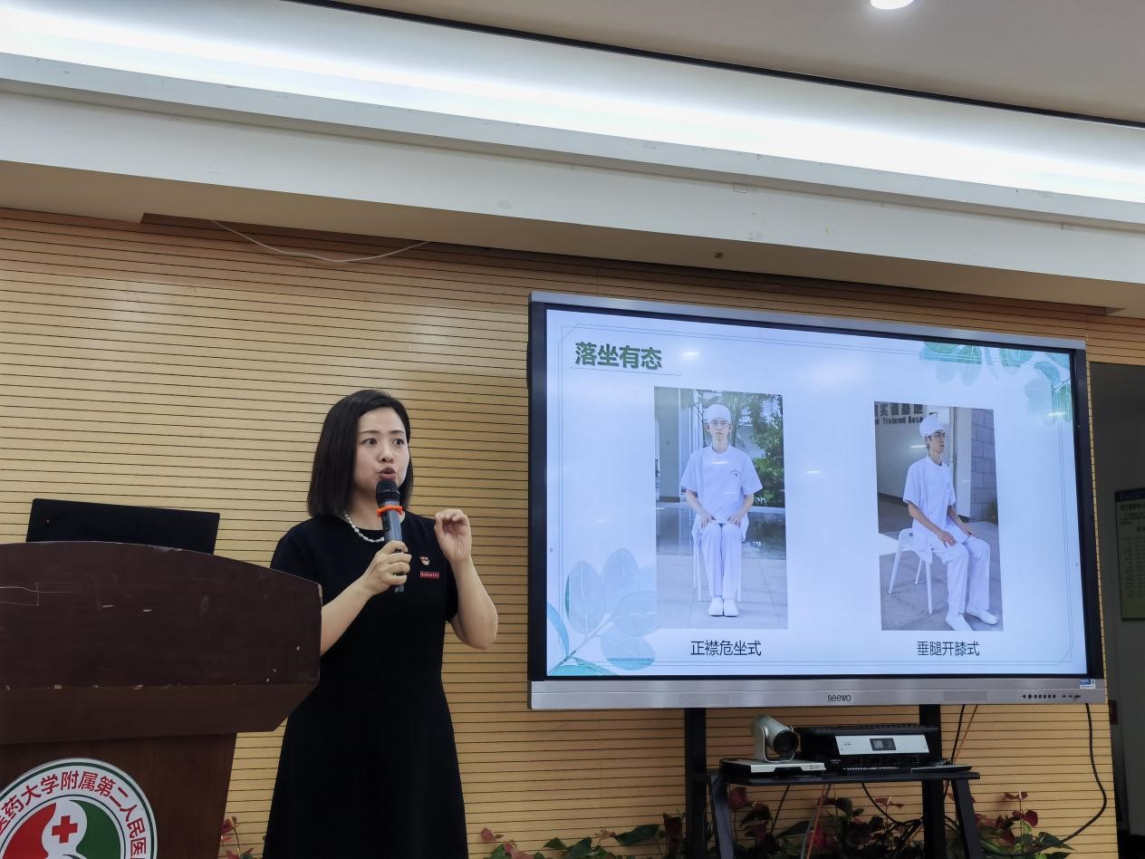 接著,劉菲菲老師就護(hù)士的儀容禮儀、服飾禮儀、舉止禮儀和言談禮儀四個(gè)方面進(jìn)行了詳細(xì)闡釋。