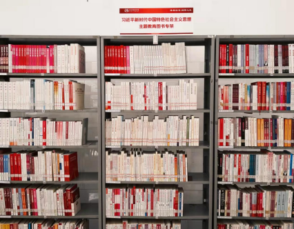 專架陳列了《習(xí)近平著作選讀》(第一卷、第二卷)、《習(xí)近平關(guān)于調(diào)查研究論述摘編》《習(xí)近平新時代中國特色社會主義思想專題摘編》《習(xí)近平新時代中國特色社會主義思想學(xué)習(xí)綱要(2023年版)》等主題教育重要學(xué)習(xí)材料,以及習(xí)近平新時代中國特色社會主義思想其他相關(guān)圖書,包括習(xí)近平總書記著作、論述摘編、學(xué)習(xí)讀本、工作足跡、思想研究、系列重要講話、語言典故等共計500余冊,可供廣大師生前往借閱。