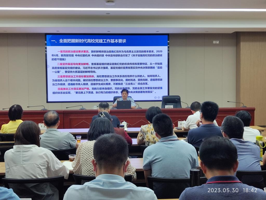 報(bào)告會(huì)上,陳洪堯解讀了新時(shí)代高校黨建的基本要求,從理論和實(shí)踐層面系統(tǒng)分析了高?;鶎狱h組織的建設(shè)目標(biāo)、決策制度和運(yùn)行機(jī)制,并結(jié)合其長(zhǎng)期黨建工作實(shí)踐經(jīng)歷,就如何強(qiáng)化政治功能和組織功能,提升黨組織活力,推進(jìn)黨建事業(yè)深度融合提出了創(chuàng)新思路。