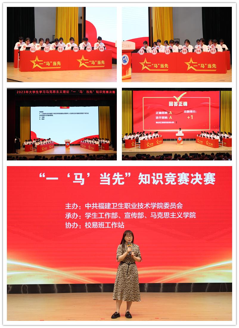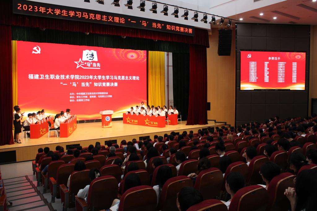 在深入開展學(xué)習(xí)貫徹習(xí)近平新時(shí)代中國(guó)特色社會(huì)主義思想主題教育之際,6月1日下午,由中共福建衛(wèi)生職業(yè)技術(shù)學(xué)院委員會(huì)主辦,學(xué)生工作部、宣傳部、馬克思主義學(xué)院承辦,校易班工作站協(xié)辦的福建衛(wèi)生職業(yè)技術(shù)學(xué)院2023年大學(xué)生學(xué)習(xí)馬克思主義理論“一‘馬’當(dāng)先”知識(shí)競(jìng)賽決賽在學(xué)術(shù)報(bào)告廳舉行。校黨委書記曾武祈、黨委副書記李美華、副校長(zhǎng)黃銘珊,學(xué)生工作部、馬克思主義學(xué)院、團(tuán)委、各院系相關(guān)負(fù)責(zé)人,輔導(dǎo)員及學(xué)生代表觀摩比賽。