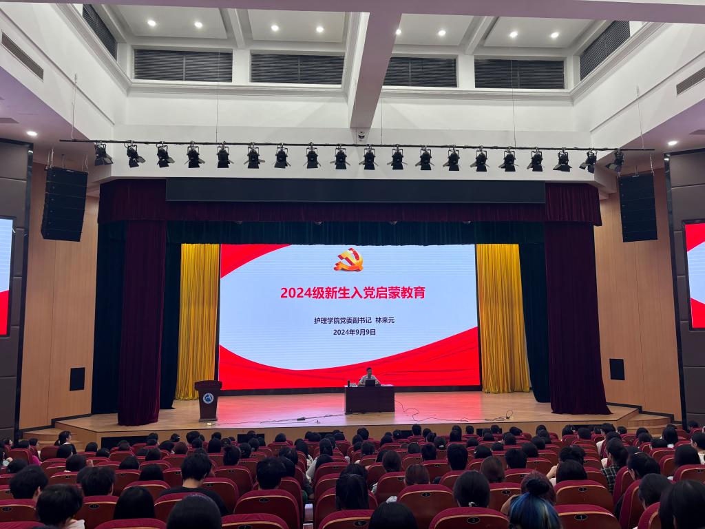 為深入學習貫徹習近平新時代中國特色社會主義思想和黨的二十屆三中全會精神,深化理想信念教育,激發(fā)愛黨愛國熱情,引導青年大學生堅定不移聽黨話、跟黨走,護理學院黨委于9月9日晚在崇學廳開展2024級新生入黨啟蒙暨黨史學習教育專題黨課。此次黨課由學院黨委副書記林來元主講。