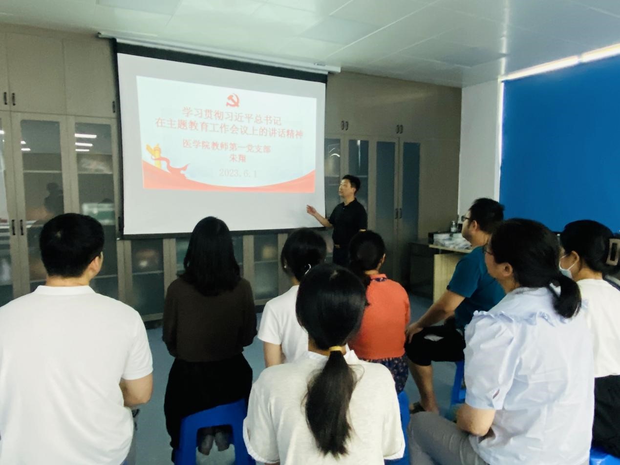 連日來(lái),醫(yī)學(xué)院教師第一黨支部開(kāi)展學(xué)習(xí)貫徹習(xí)近平新時(shí)代中國(guó)特色社會(huì)主義思想主題教育,通過(guò)原原本本學(xué)、全面系統(tǒng)學(xué)、聯(lián)系實(shí)際學(xué)等多種形式,掀起了教師學(xué)習(xí)貫徹主題教育精神的熱潮。為進(jìn)一步鞏固主題教育學(xué)習(xí)成果,6月12日,支部書(shū)記朱翔給支部全體黨員上了一堂意義深刻的專題黨課。