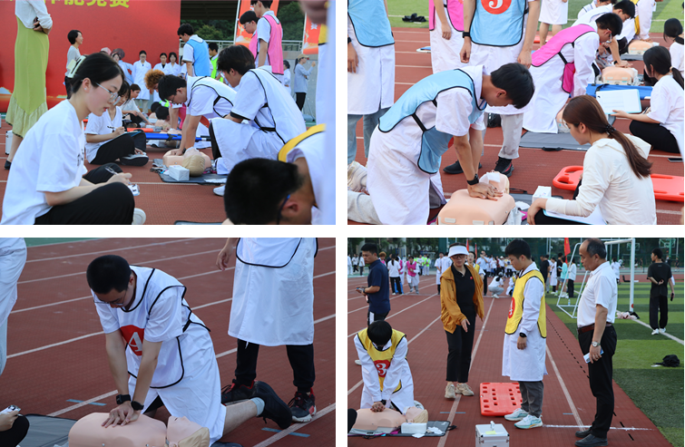 本次比賽是2023年職業(yè)教育活動周專業(yè)技能競賽活動中的一項,通過擔架抬真人、夾花生、心肺復蘇等與職業(yè)實際場景相結(jié)合的形式,檢驗同學們職業(yè)體能儲備、精細動作控制、專業(yè)技能掌握、聯(lián)動聯(lián)調(diào)配合等多個維度的能力,展現(xiàn)學?!搬t(yī)體融合”“體教融合”的發(fā)展理念和“崇健臻善”的校風精神。