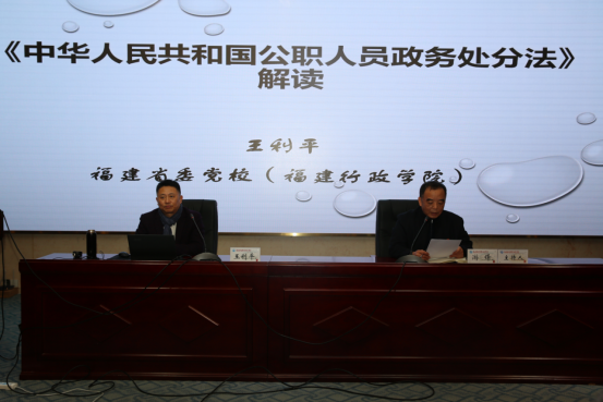 為進(jìn)一步學(xué)習(xí)貫徹《中華人民共和國公職人員政務(wù)處分法》(以下簡稱《政務(wù)處分法》),加強(qiáng)我校公職人員的政治責(zé)任感和使命感,2021年1月6日下午,我校紀(jì)委特邀福建自貿(mào)試驗(yàn)區(qū)研究院執(zhí)行院長、福建省委黨校、福建行政學(xué)院法學(xué)院教研部副教授王利平作《政務(wù)處分法》解讀專題講座,校領(lǐng)導(dǎo)、全體中層干部、黨總支(直屬黨支部)書記、黨支部書記、紀(jì)檢委員(含總支、支部紀(jì)檢委員)、紀(jì)委辦公室全體人員等100余人參加。講座由校紀(jì)委書記游鋒主持。