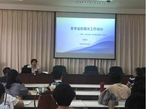 隨后,朱扶蓉處長分別從學(xué)生錯(cuò)峰返校及教學(xué)安排、分批次返校教室安排、復(fù)課證明查驗(yàn)制度、課堂突發(fā)情況處置、疫情防控期間實(shí)訓(xùn)室管理等五個(gè)方面進(jìn)行了詳細(xì)的講解與培訓(xùn),強(qiáng)調(diào)各位教師、實(shí)驗(yàn)技術(shù)人員及教學(xué)管理人員根據(jù)疫情防控要求,遇到突發(fā)事件時(shí)主動(dòng)報(bào)告,按處置流程規(guī)范處理,相關(guān)部門及時(shí)做好后續(xù)消殺工作。