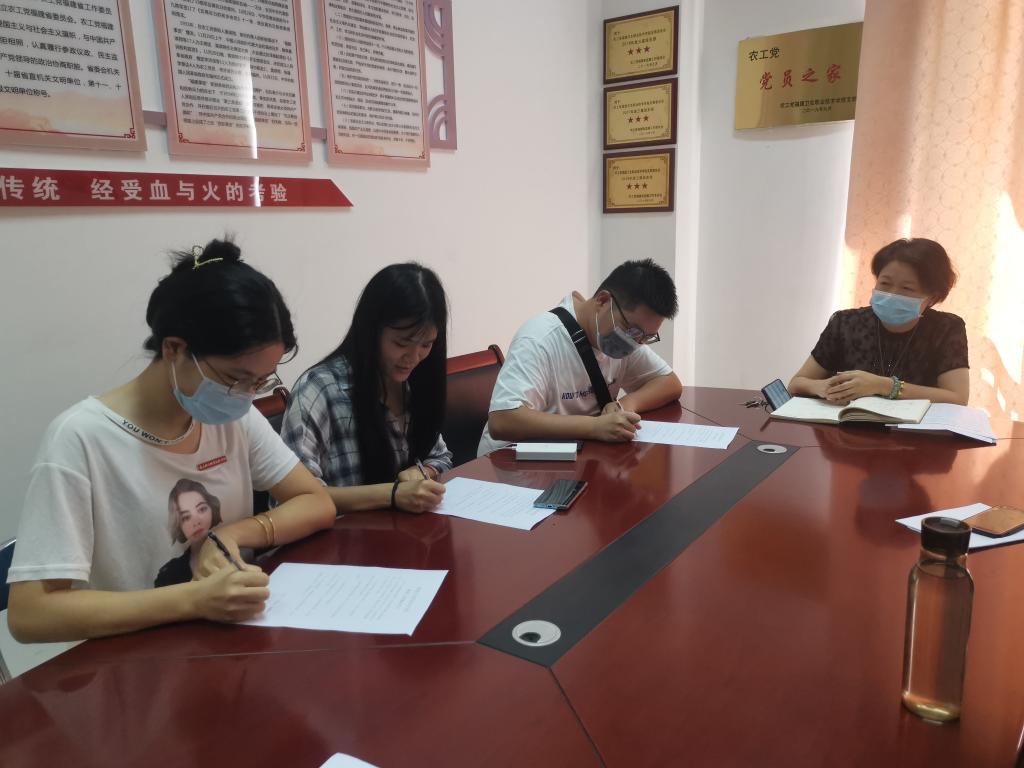 教務(wù)處處長朱扶蓉對新進(jìn)教職工進(jìn)行吸煙有害健康的科學(xué)知識和國家對控?zé)煿ぷ饔嘘P(guān)的法規(guī)的宣傳教育,隨后組織宣誓并現(xiàn)場簽訂“教職工禁煙承諾書”。