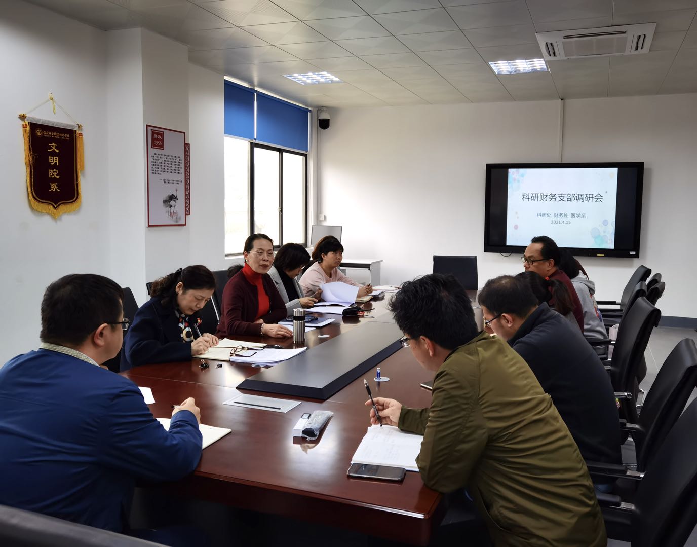 2021年4月15日,校領(lǐng)導鄭翠紅副院長率科研處、財務處黨支部黨員開展下基層調(diào)研活動。醫(yī)學系、護理學院、健康管理系、醫(yī)學基礎部主要領(lǐng)導及教師代表參加此次調(diào)研。本次調(diào)研采取集中調(diào)研方式,在醫(yī)學系會議室舉行。