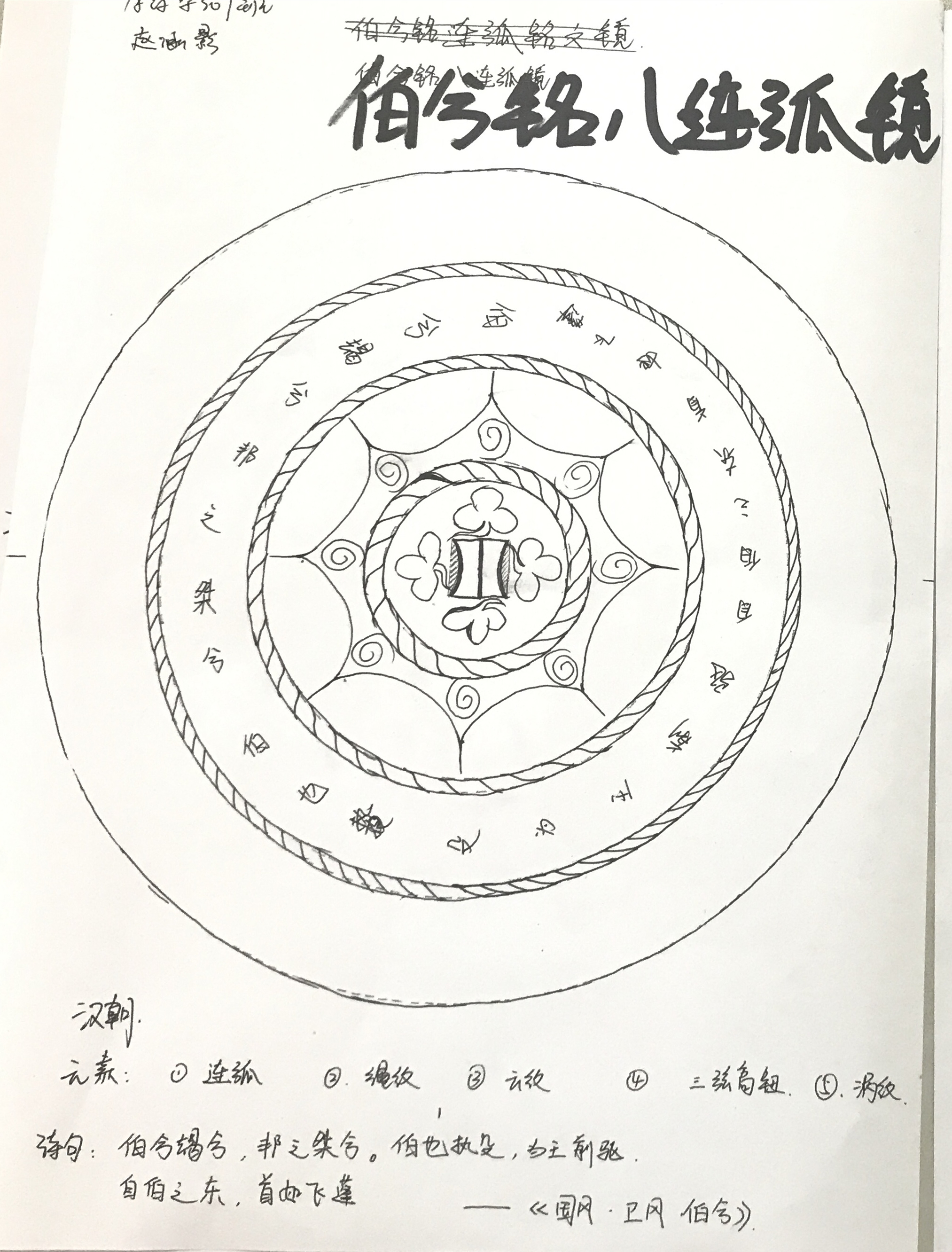 現(xiàn)場(chǎng)最優(yōu)秀的手繪作品出自18藥學(xué)307趙涵影同學(xué),她的作品不僅完全符合漢代鏡背“相思銘文”和“紋飾繁復(fù)”的特色,還將使用到的每一種鏡背元素逐一列出注釋。本次活動(dòng)使讀者們?cè)鲞M(jìn)了對(duì)古銅鏡的了解,提高了對(duì)博物館中傳統(tǒng)文化的向往與好奇,有利于推進(jìn)校園文化建設(shè)。