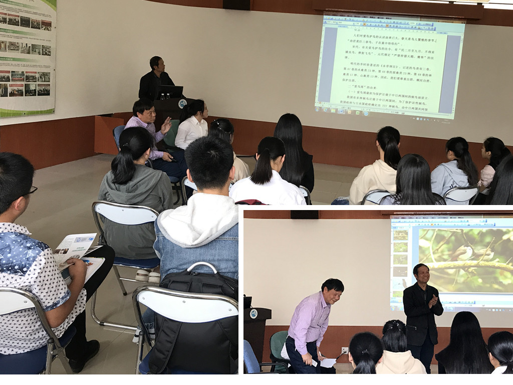 王屏老師對(duì)鳥(niǎo)類(lèi)攝影情有獨(dú)鐘,通過(guò)多年的創(chuàng)作積累,拍攝到了許多珍貴相片,不但具有一定的藝術(shù)性,而且很有科普價(jià)值。值得一提的是,其中很多相片攝于我們校園,體現(xiàn)了我院清新自然的生態(tài)美?;顒?dòng)中他向大家科普了鳥(niǎo)類(lèi)相關(guān)知識(shí),并生動(dòng)地描述了自己多年的拍鳥(niǎo)經(jīng)歷,現(xiàn)場(chǎng)有問(wèn)有答,氣氛活躍。之后,還帶領(lǐng)大家到圖書(shū)館一樓攝影展前細(xì)致的講解了他拍攝的作品,大家進(jìn)行了更加深入的交流討論。通過(guò)這次活動(dòng)增強(qiáng)了我們與大自然和諧共生的意識(shí),積極響應(yīng)了十九大報(bào)告提出的生態(tài)文明建設(shè)號(hào)召。