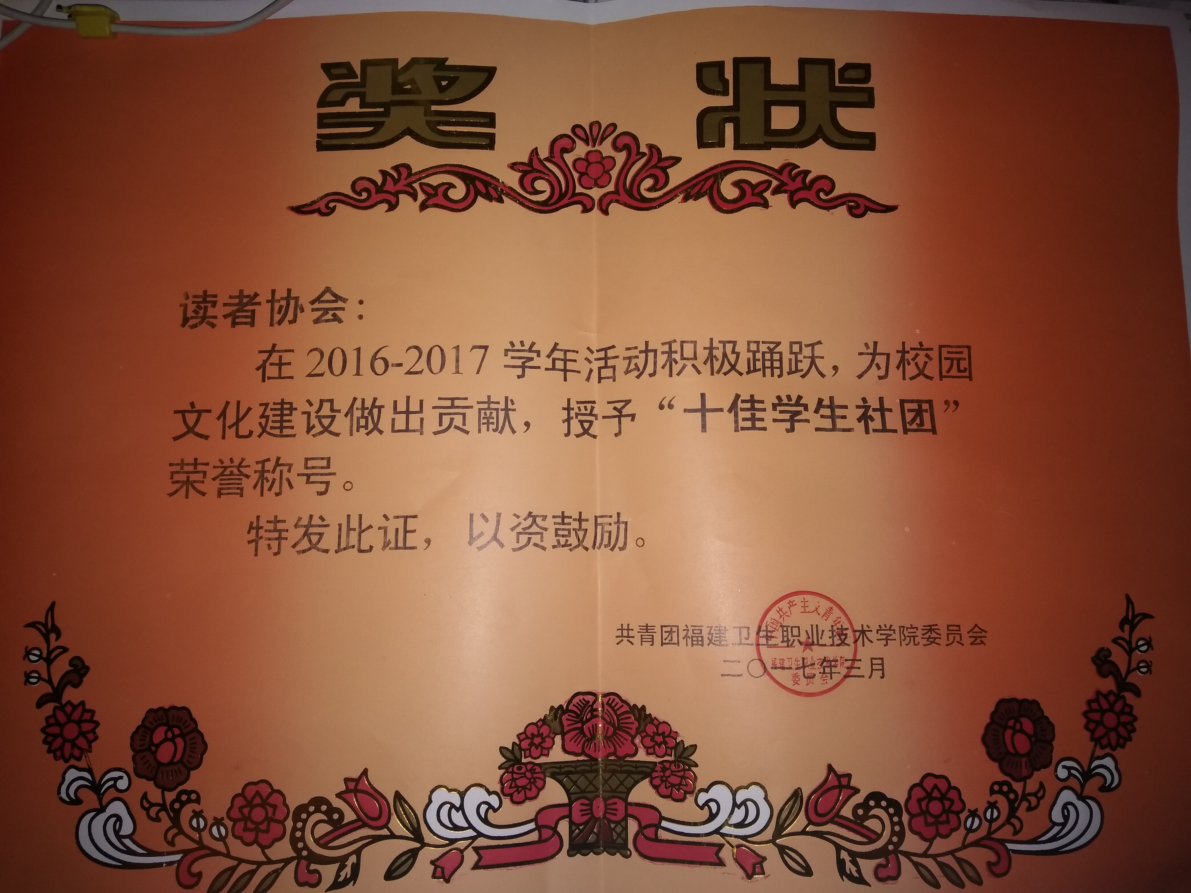 由圖書館教師指導的讀者協(xié)會,在2016-2017學年活動積極踴躍,為校園文化建設作出貢獻,被學院團委評為“十佳學生社團”、“十佳社團社長”。特此祝賀!