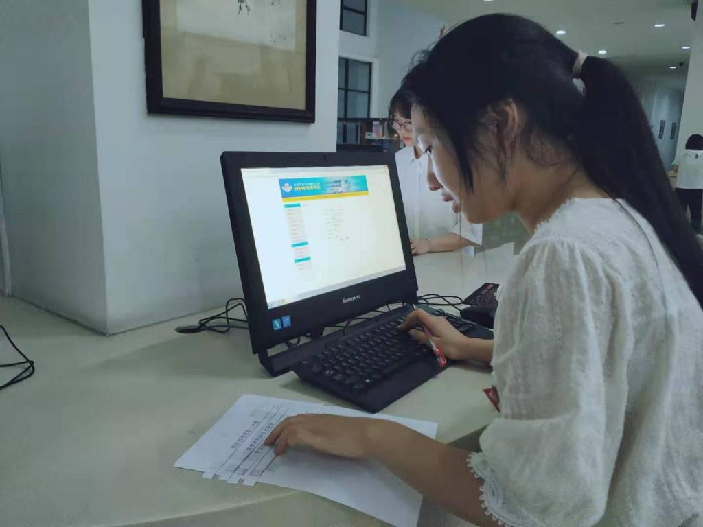 參加決賽的勤工學生館員在圖書閱覽室查找圖書