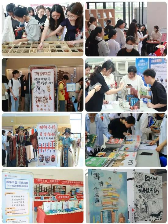 圖書館在一樓大廳同時開啟第 30 個世界讀書日游園會,涵蓋醫(yī)學(xué)類精品教材巡展、閱讀空間美化活動成果展、紙質(zhì)圖書讀者薦購、數(shù)字資源推廣、非遺文化趣味問答、中草藥科普與手工掛飾制作等。這場精心籌備的文化盛宴將閱讀與游戲巧妙融合?,F(xiàn)場笑語盈盈,師生們在沉浸式體驗中感受閱讀魅力,在互動交流中碰撞思想火花。