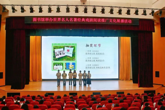 戲劇展播結(jié)束后,同學(xué)們前往圖書館一樓大廳借閱相關(guān)圖書。