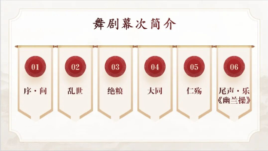 第一期展播內(nèi)容,選取中國(guó)歌劇舞劇院創(chuàng)作的古典舞劇《孔子》。自2013年首演以來,在世界各國(guó)巡回演出近400場(chǎng),受到社會(huì)各界高度好評(píng)和世界各族人民的認(rèn)可。
