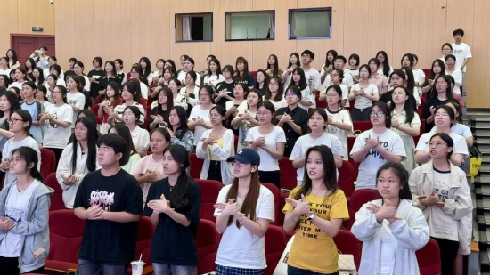 活動(dòng)接近尾聲,由主持人領(lǐng)讀《論語》中的原著金句,并現(xiàn)場(chǎng)教學(xué)劇中出現(xiàn)的禮儀手勢(shì)——“叉手禮”,讓同學(xué)們體會(huì)到傳統(tǒng)文化的魅力,也更加加深了對(duì)孔子這位“至圣先師”的理解。