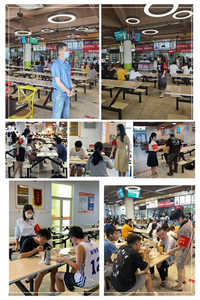 為更好地傳承《1921》、《革命者》彰顯的革命精神和榜樣力量,踐行為人民的服務精神,在當前疫情防控的特殊時期,圖書館黨支部9月組織全體黨員定期開展衛(wèi)生防疫督導執(zhí)勤工作,主要負責明湖餐廳午晚餐時段執(zhí)勤督導。通過黨員們熱情指引,耐心提醒,積極服務,明湖餐廳師生呈現(xiàn)出用餐和防疫的良好秩序。