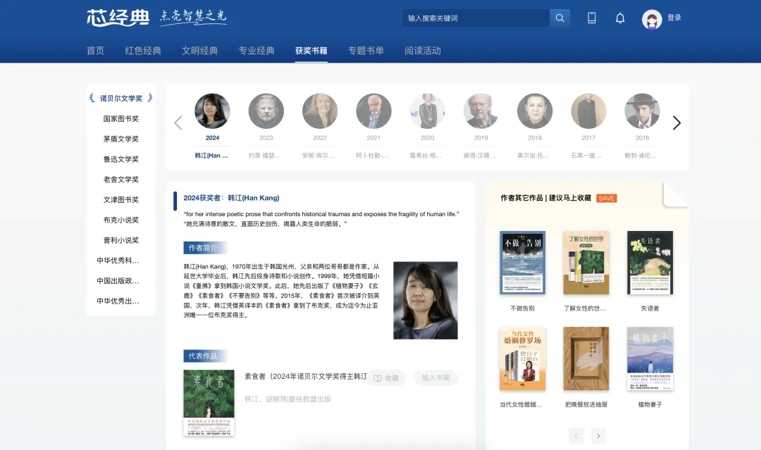 平臺(tái)收錄諾貝爾文學(xué)獎(jiǎng)、茅盾文學(xué)獎(jiǎng)、魯迅文學(xué)獎(jiǎng)等多項(xiàng)全球頂尖文學(xué)殿堂級(jí)的圖書作品。