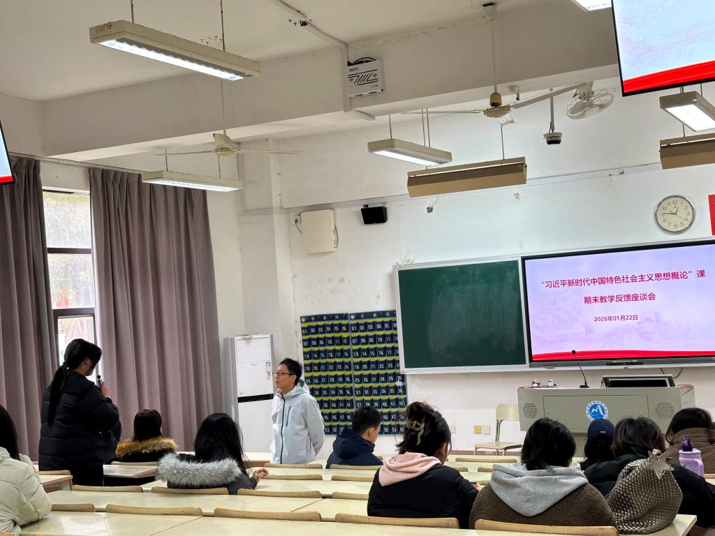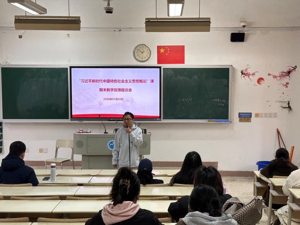 為深入了解學(xué)生對(duì)《習(xí)近平新時(shí)代中國(guó)特色社會(huì)主義思想概論》課程的教學(xué)需求,進(jìn)一步優(yōu)化教學(xué)內(nèi)容與方法,提升教學(xué)質(zhì)量,習(xí)近平新時(shí)代中國(guó)特色社會(huì)主義思想概論教研室于2026年1月22日在教學(xué)樓111教室組織召開學(xué)生座談會(huì)。座談會(huì)由教研室張?zhí)煳睦蠋熤鞒郑瑩?dān)任本門課程的教師參與座談會(huì),2024級(jí)各班學(xué)習(xí)委員及學(xué)生代表積極參與、踴躍發(fā)言。