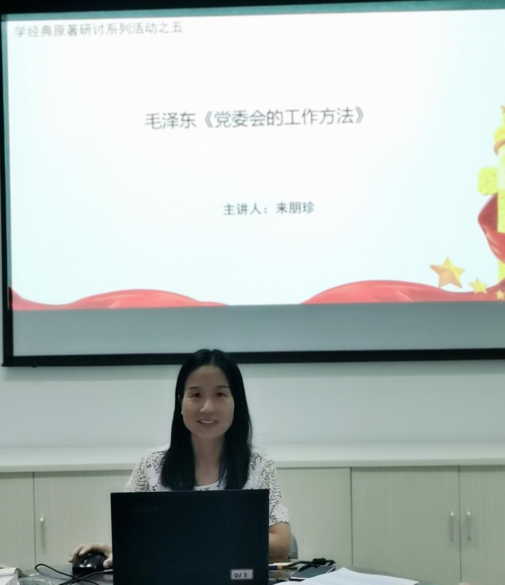 活動(dòng)中,來(lái)朋珍老師從《黨委會(huì)的工作方法》的歷史背景、《黨委會(huì)的工作方法》的主要內(nèi)容及要點(diǎn)及重溫《黨委會(huì)的工作方法》的現(xiàn)實(shí)意義三個(gè)方面帶領(lǐng)大家對(duì)毛澤東同志的《黨委會(huì)的工作方法》進(jìn)行研讀。來(lái)朋珍老師娓娓道來(lái),用通俗的語(yǔ)言讓大家感受到毛澤東同志在建立新中國(guó)前夕對(duì)中國(guó)共產(chǎn)黨黨員干部在工作方法、工作紀(jì)律方面的諄諄教誨及細(xì)細(xì)叮囑,同時(shí)也幫助大家了解了我黨的領(lǐng)導(dǎo)制度,對(duì)我們處理好教學(xué)、科研、學(xué)生工作起到了很好的啟迪作用。